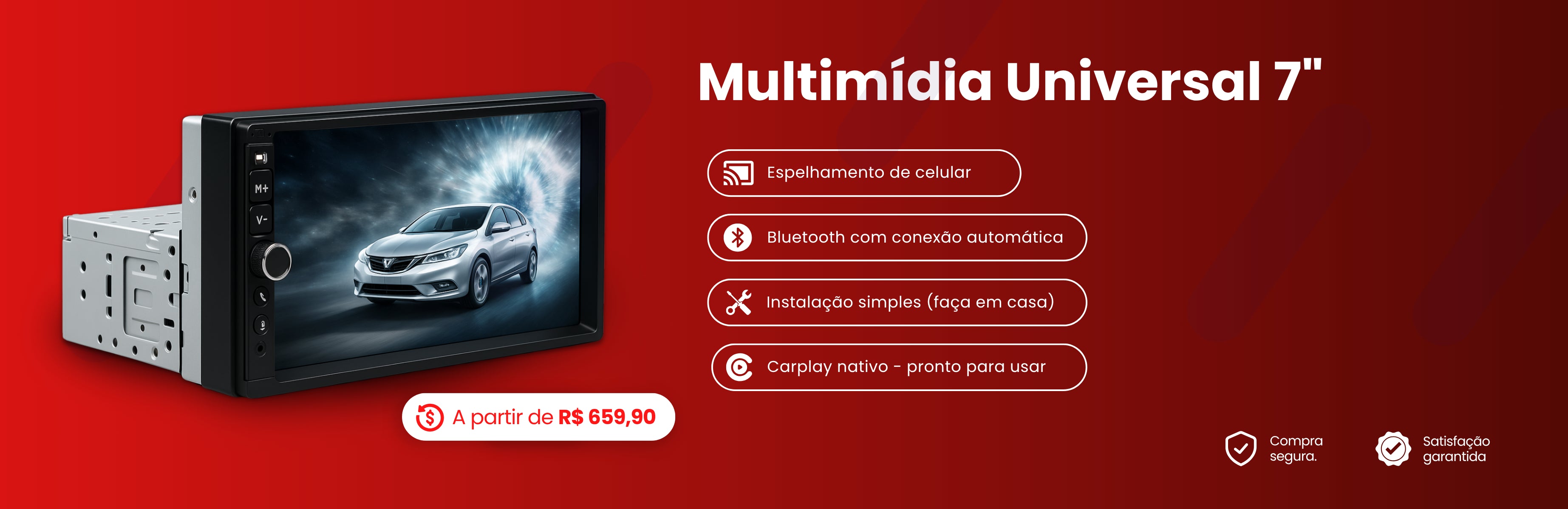 Multimídia Universal Android 13 – 7” | GPS, CarPlay & Android Auto
