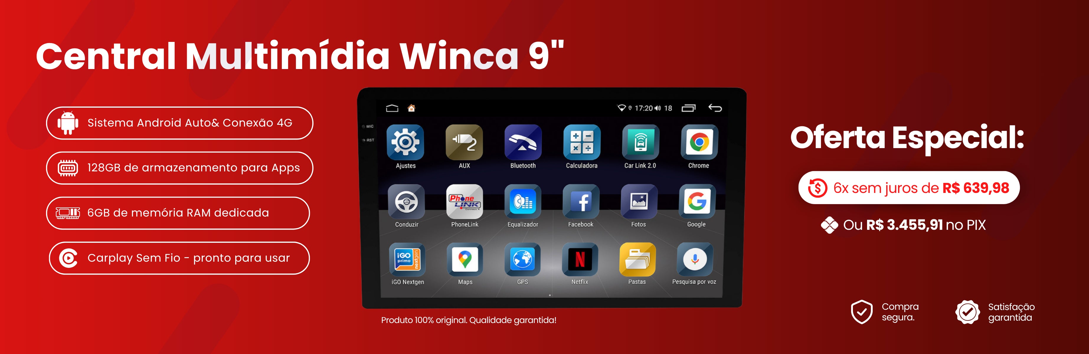 Multimídia Universal Android 13 – 9” | GPS, CarPlay & Android Auto